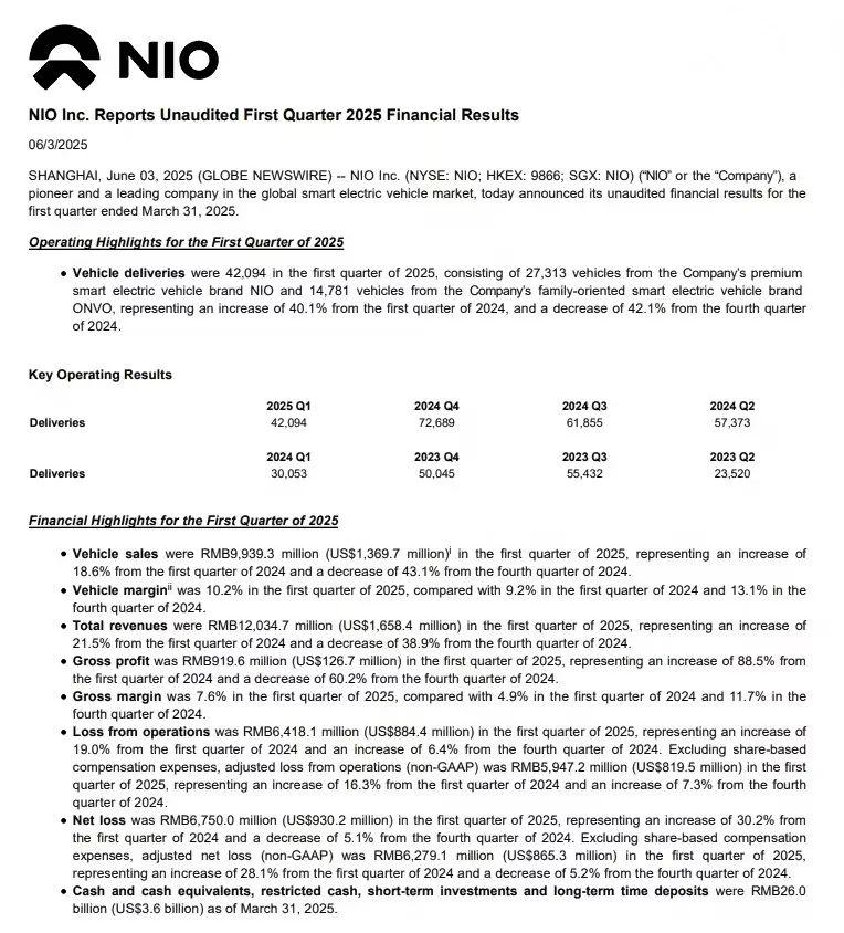 尤其在2025年一季度,据财报显示,蔚来的营收虽然超120亿元,同比增长超21%,净亏损却依旧达到67.5亿元,同比扩大30.2%。