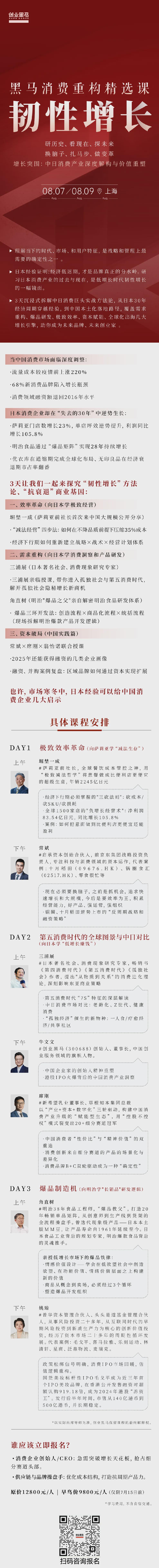报名黑马「消费重构精选课」,国内首场,汇聚中日消费领域顶尖实战派导师,用3天时间沉浸式拆解中日消费巨头方法论。