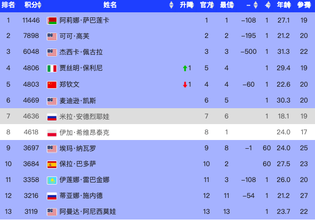 目前,郑钦文争夺温网4号种子的竞争对手,仅剩下凯斯和保利尼,郑钦文暂时落后第4位的保利尼3分。要想超越对手,郑钦文只能在本站比赛走得比对手更远才行。