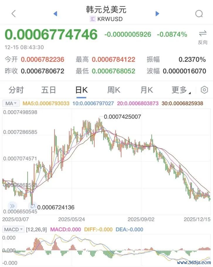 消息面上,上周五,韩元兑美元汇率连续第四个交易日走软,创下自4月9日以来的最低水平。