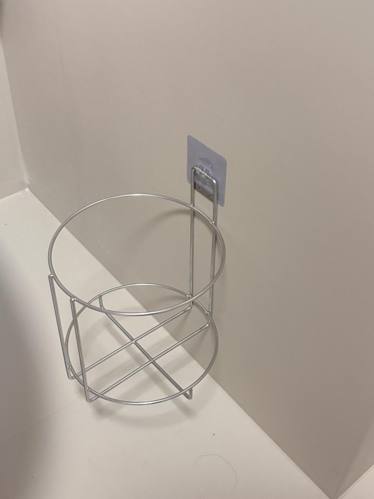 网友家挑选的这个垃圾桶,直接壁挂上墙,不落地不占位,不用担心脏了需要擦洗,而且支架的影子还蛮有线条美感的,对小户型空间十分友好。