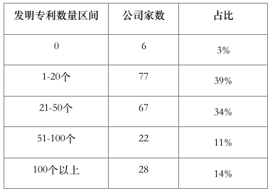 200家上市公司合计拥有发明专利超过1.7万项,平均每家拥有89项发明专利,中位数为27项。发明专利数量最多的是中芯国际,多达5965个。平均每家公司研发人员数量超过300人,52家公司实际控制人拥有博士学历。