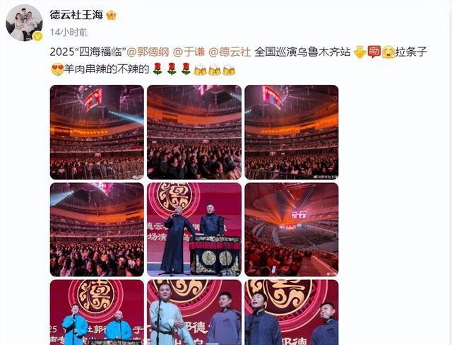 郭德纲、于谦举办相声专场,多选择在省会城市、大城市的体育馆。这次乌鲁木齐演出,是在乌鲁木齐奥林匹克体育中心体育馆举办的,该场馆有1.2万个座位。郭德纲业务技能是精湛的,主演水平高,助演自然不能太次。能给郭德纲助演的,都是德云社当红演员,基本上都有个人专场的存在。这次大圣策略,郭德纲带着张九南、高九成,张鹤伦、郎鹤炎,高峰、栾云平来的。