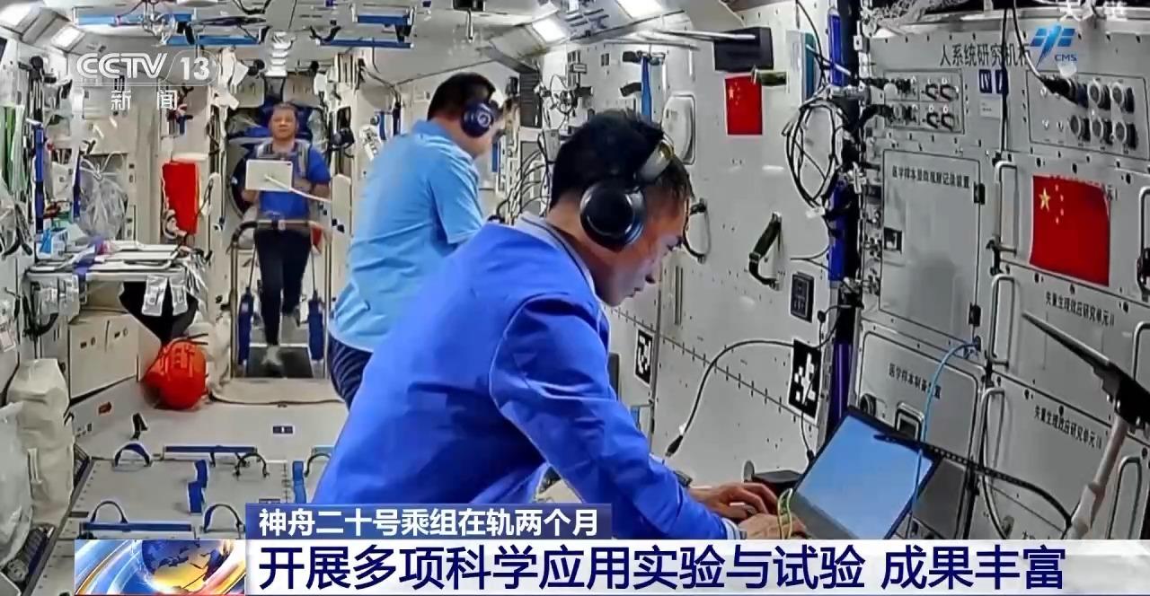 自4月25日进驻中国空间站以来,神舟二十号乘组已经在轨满两个月优配良品,三名航天员陈冬、陈中瑞、王杰迅速适应微重力环境,完成与神舟十九号乘组的在轨交接,接续开展多项空间科学应用实验与试验,并出舱进行了空间碎片防护装置安装和空间站巡检。
