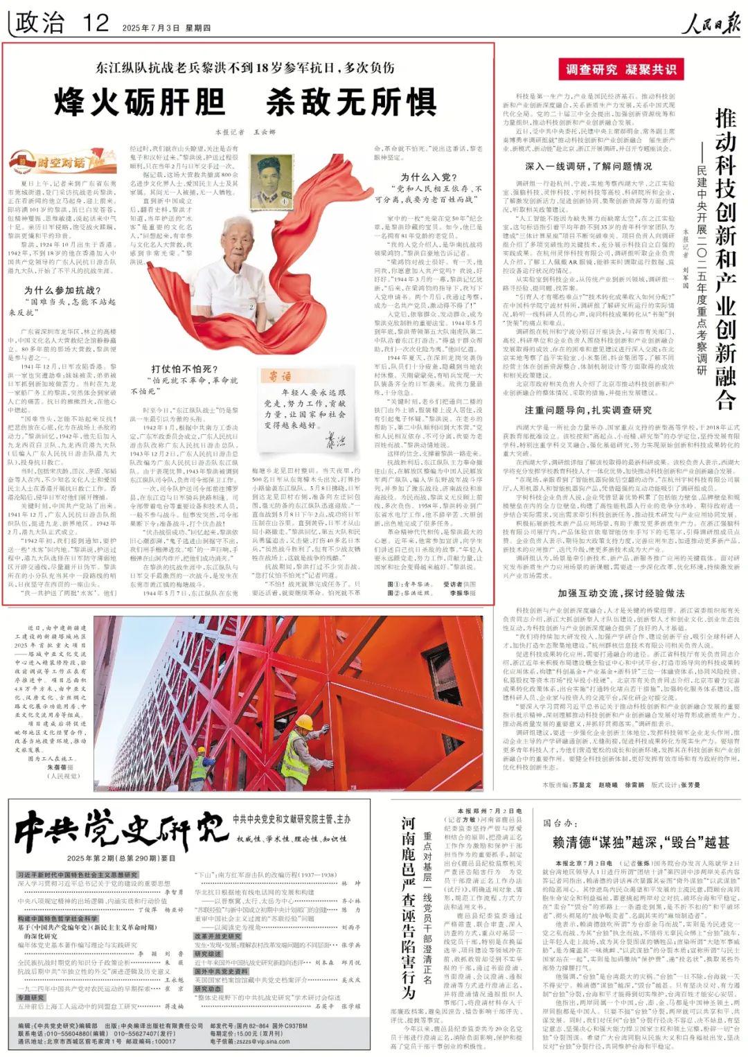 革命精神代代相传,是黎洪最大的心愿。近年来,他常参加宣讲,向学生们讲述自己抗日杀敌的故事。“年轻人要永远跟党走,努力工作,贡献力量,让国家和社会变得越来越好。”黎洪说。